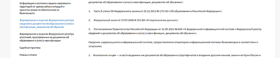 Федеральный закон от 29.12.2012 № 273-ФЗ «Об образовании в Российской Федерации» (ч. 9 и 10 ст. 98, п. 2 ч. 15 ст. 107)